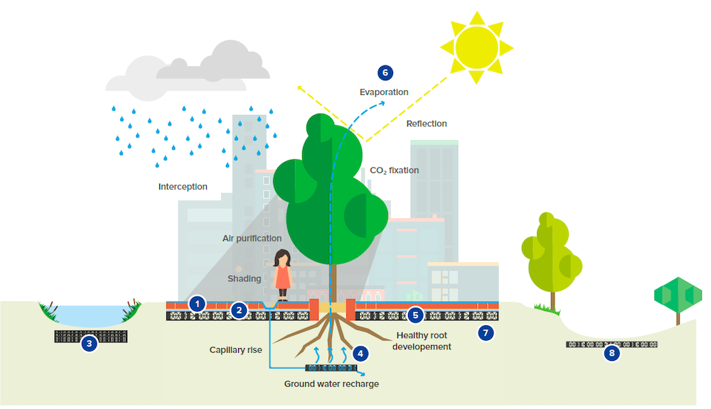 We strive to achieve positive outcomes like these, designing products that protect and allow inner-city trees to thrive as part of a drainage system, for example.